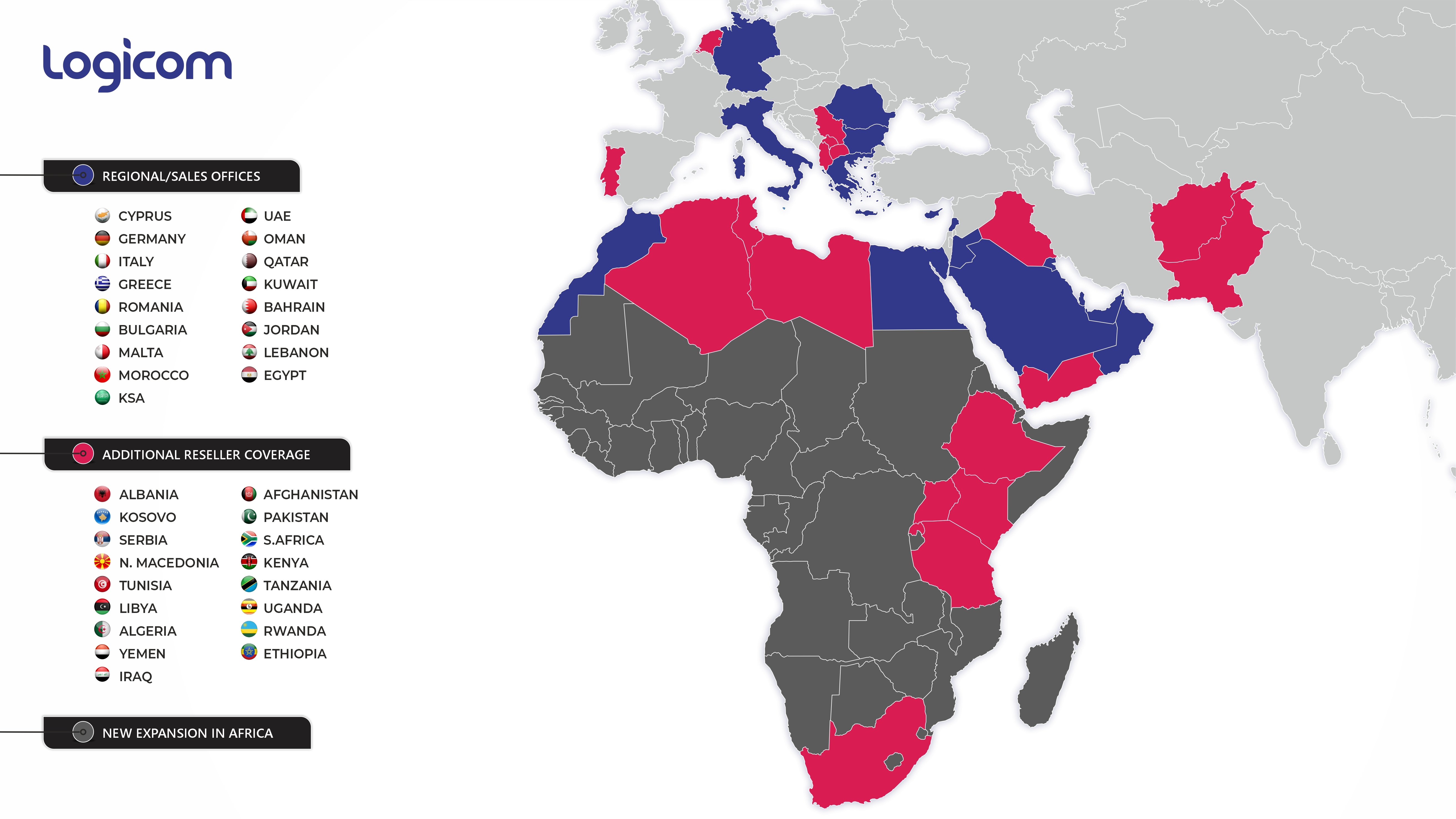 Logicom operations span across multiple regions, from Europe to the Middle East and South-East Asia.